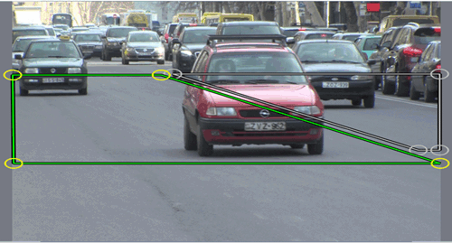 Defining identification area boundaries. Select isolated zones to obtain information about the passage of a car with a link to a particular lane (control of bus lanes, detection of car passage along the sidewalk, etc.). In addition, this will reduce the number of false alarms of the detector and will save the resources of the server, analyzing only targeted and suitable area of the image.