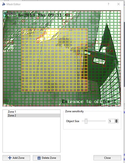 To configure the detector's sensitivity, change the value of the Object size slider. The sensitivity settings are specified separately for each zone. Up the five independent detection zones can be created.