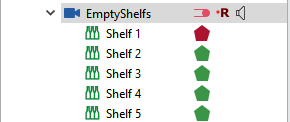 You can track the detection zones' state in real time in the object tree (CMS). When the number of items decreases, the color