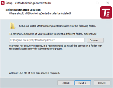 Select the installation folder by manually specifying the path or using the Browse button, and click Next.