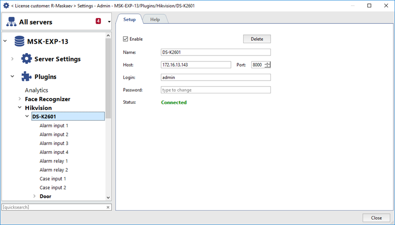 In order for the server to start working with the previously created Hikvision ACS Panel, the following parameters should be setup:
