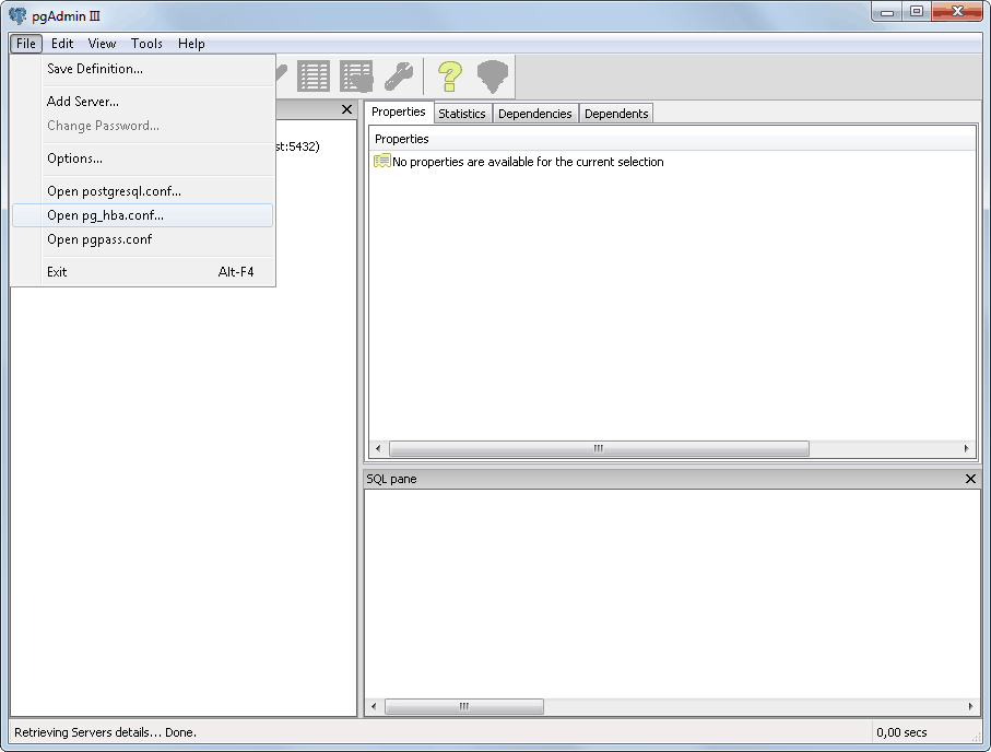 7. Press CTRL+S to save pg_hba.conf , and close the pgAdmin utility.
