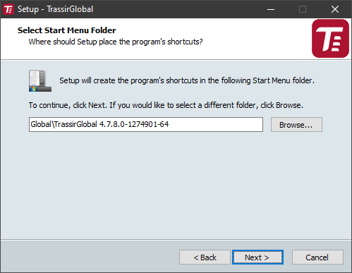 Specify the Start Menu folder where application shortcuts will be created. Click Next.