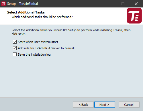 - If you plan to use the standard Windows Firewall, then set the Add rule to firewall checkbox.