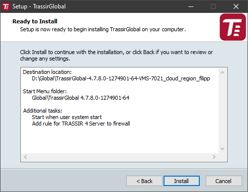 The wizard will show the selected installation parameters in the final step. Click the Install button.