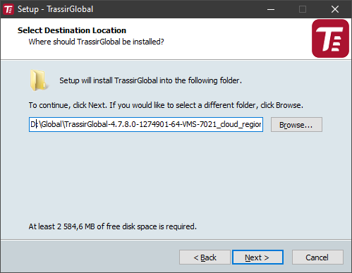 Specify the installation folder manually or by using the Browse button. Click the Next button after that.