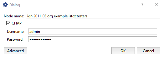 - If you entered CHAP authentication parameters when configuring the network storage, set the CHAP checkbox and enter your username and password.