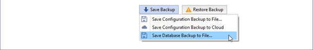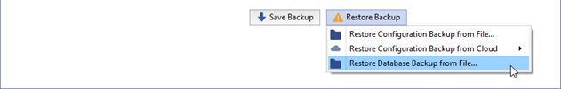 Restore backup - allows you to restore the system configuration or database from a previously created backup.