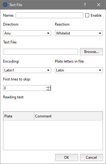 - First lines to skip - The number of lines that should not be processed (for example, if the file contains some textual information other than license plate numbers). If the file only contains license plate numbers, then leave the value "0".