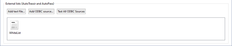 - In the Settings window on the Server settings -> AutoTRASSIR/AutoPass tab, click the Add text file button.