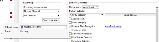 To activate the plugin, go to the Channel settings to the Software detectors area, select License plate recognizer and then select the Server which will calculate the analytics.