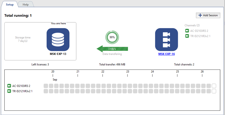 If the destination server is synchronizing with the server that stores archive from the personal video recorders (PVR), the names of users that have been selected during PVR turn in are displayed instead of the channel names. In case you select the "Anonymous" user during PVR turn in, the PVR identifier will be displayed instead of the channel name.