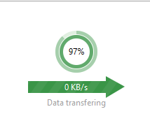 The round chart displays the merge session progress. The outer circle represents the substream merge and the inner one represents the mainstream. The number in the middle stands for the size of the archive, transferred to the destination server.
