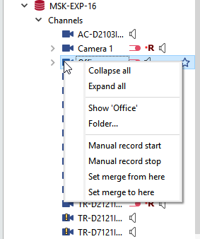 If the source server is a server that stores archive from personal video recorders, there is no need to select channels to transfer archive to another server. The source server automatically adds channels to the session, which all correspond to the PVR user archive. In case during PVR turn in you select the "Anonymous" user, the PVR identifier will be displayed instead of the channel name.