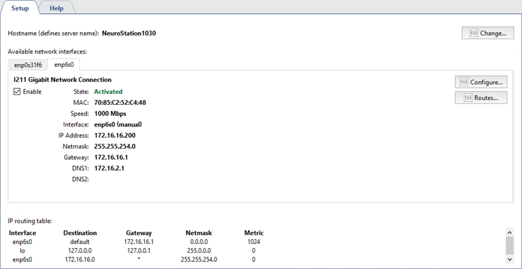 Below, Available network interfaces is displayed. Configuration of network interfaces, switching them on and off are made in the tabs.