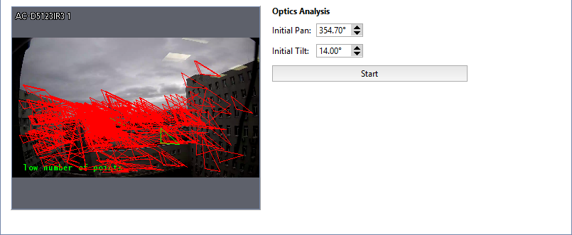 Preferably, there should not be motion and external noise (rain, snow, swaying trees) in the camera's field of view during the optics analysis.