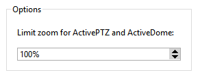 The Limit zoom for ActivePTZ and ActiveDome additional parameter lets you manage the camera maximal zoom. The default value is 100% (no limits). In case the 0% value is set, the camera will rotate in the required direction without zoom.