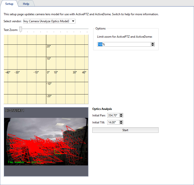 In order to correctly position the PTZ camera in ActivePTZ mode and in order for a PTZ camera to operate properly as part of the ActiveDome plugin, the camera's optics must first be calibrated.