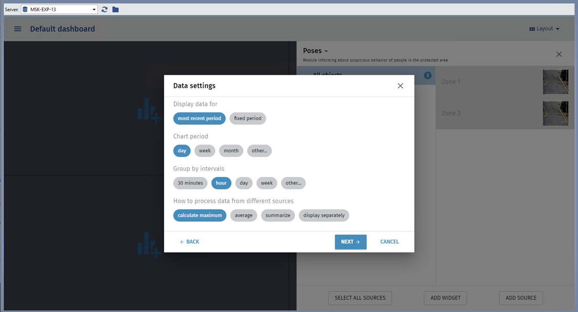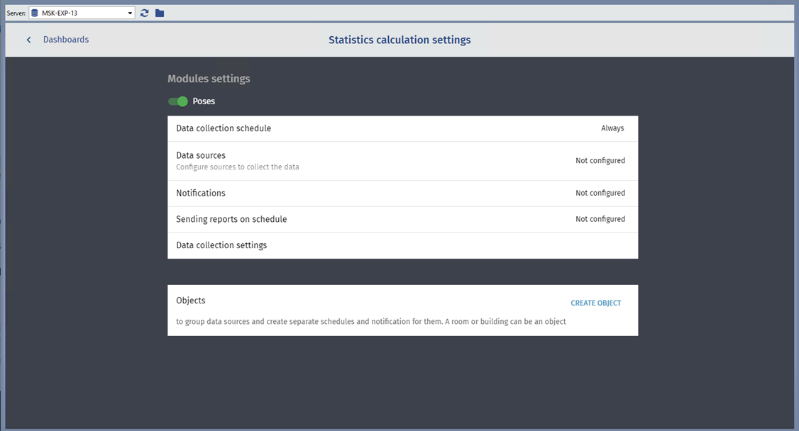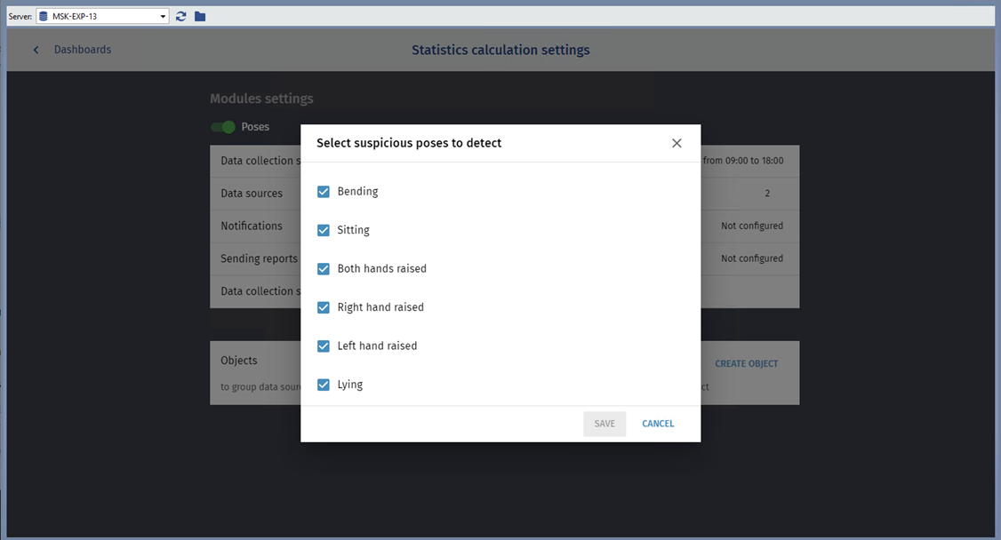 Select Data collection settings and specify the poses that the detector will consider suspicious and display on the dashboard.