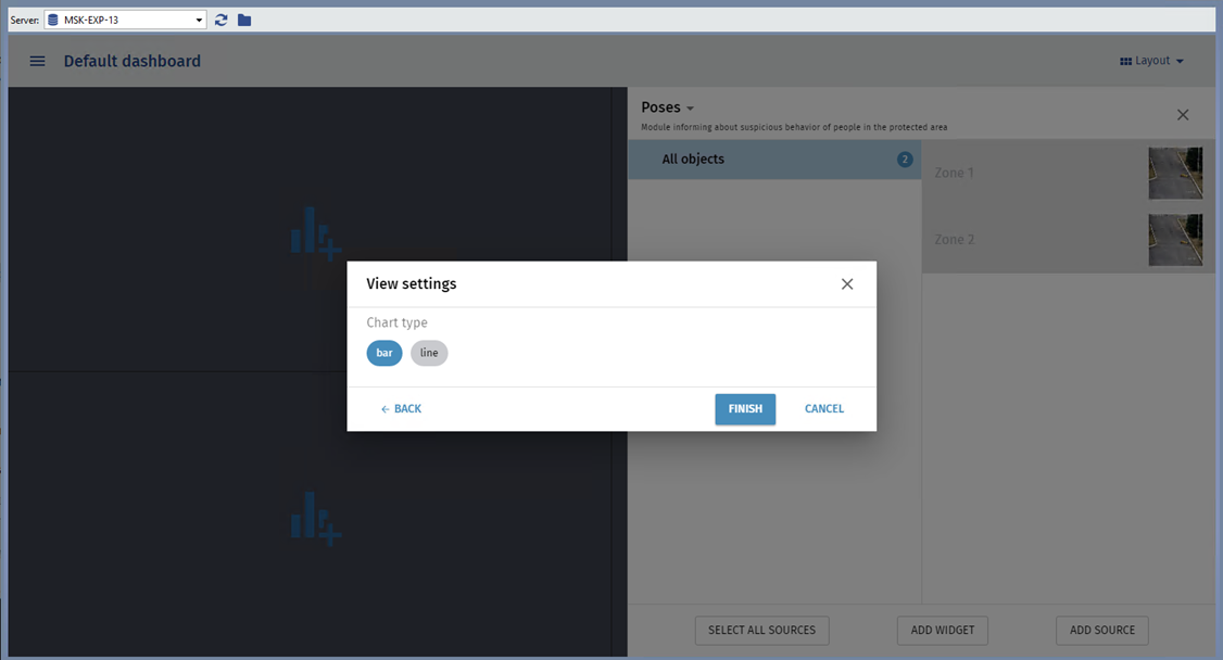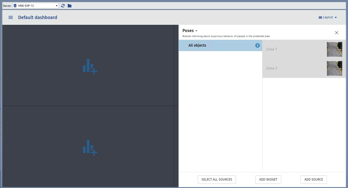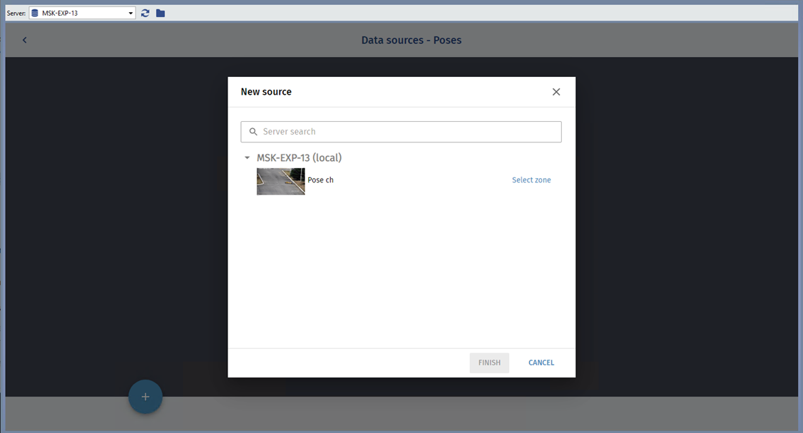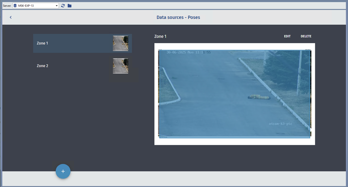 The data source for the pose detector are the Counting zones created on the channel (see Configure Pose Detector for a channel).