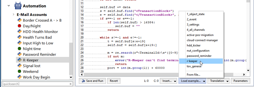 The server handles this peculiarity with an automation script that receives R-Keeper transactions, analyzes their contents, and redirects them to the appropriate ActivePOS terminal.