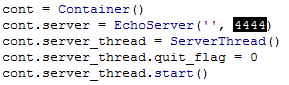 The serve awaits for the data on port 4444, by default; you can change this port number by editing the following lines, if necessary: