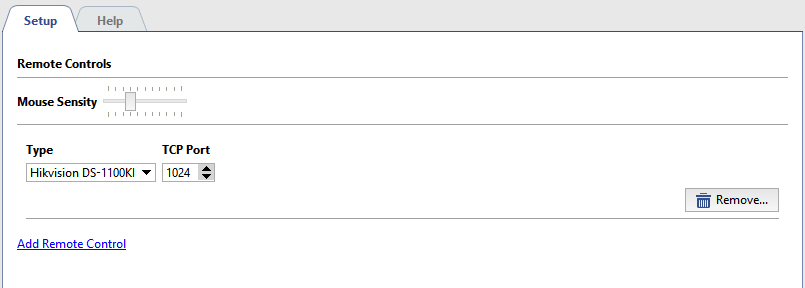 To set up a remote control select Devices -> Remote controls menu item. In this menu you can set remote control connection to the video surveillance system.