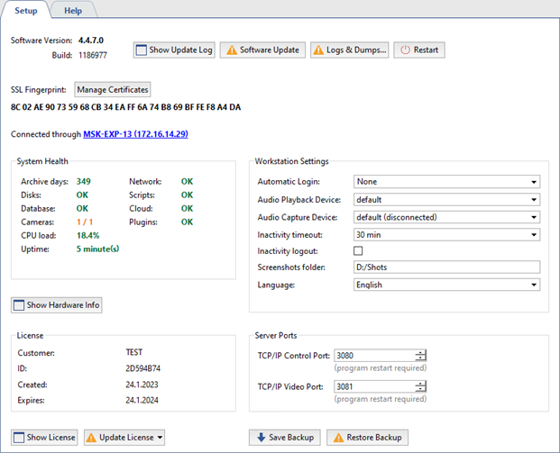 The Connected through [server name]([server IP address]) string shows the server connected to the local server or client. Learn more about ways to connect remote servers in Connecting to a new server.