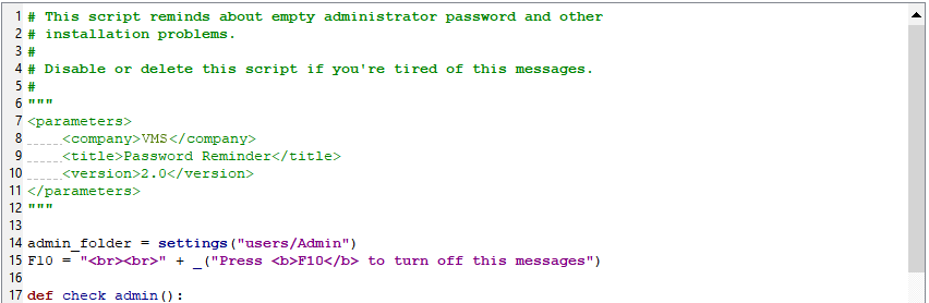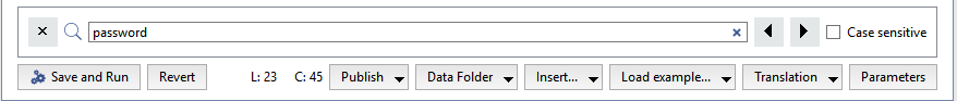 When saved in encrypted form, the text of the script displayed in the editor is encrypted. This feature will help you to protect your intellectual property and to prevent unauthorized changes to the script.
