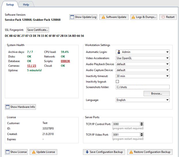 The local server is always located at the top of the list of servers. By default, the main server settings tab is displayed when the settings window is opened.