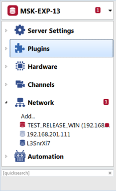 In case certain menu entries have errors in the settings, they will be automatically highlighted. Total number of error messages is displayed in settings tree nodes. A server can have a substantial number of objects parameters of which can be set (especially in case connections to the other servers are set from the given server). Use fast context search field to proceed quickly to the requested objects. |