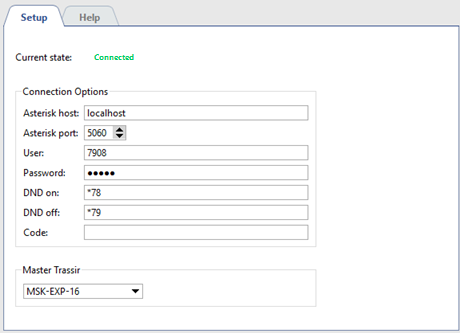 - Asterisk server - Asterisk server IP-address or DNS-name.