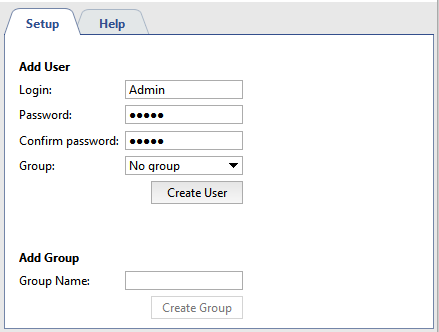 To create an account for a group or a single user, in the Settings window on the Server settings -> Users tab, select Add. Then enter the name of the user or group, create a password, and click the Create button.